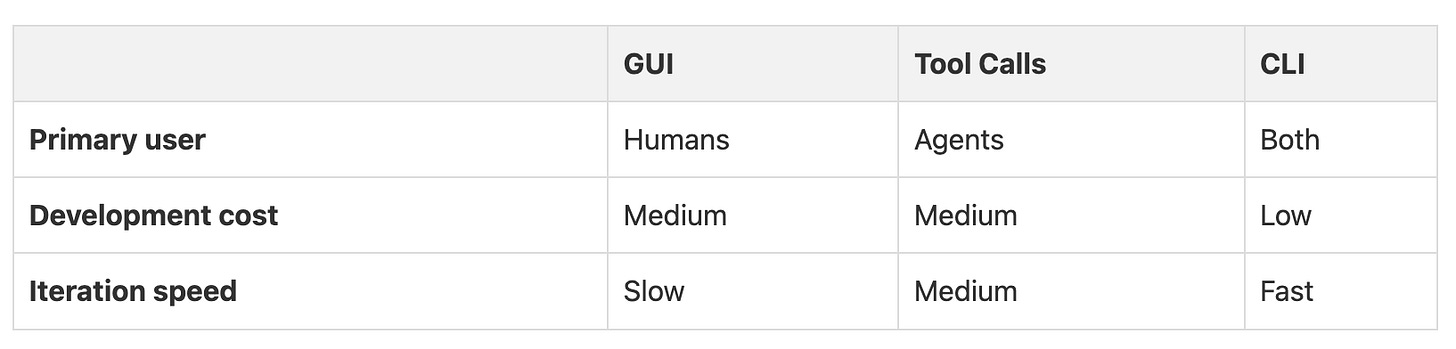 A traditional approach, which involves a GUI for humans, and separate tools for agents, doubles the development work. I built a command-line interface (CLI) instead. This single interface could be used by both me and the agent, making development much faster and debugging far easier.